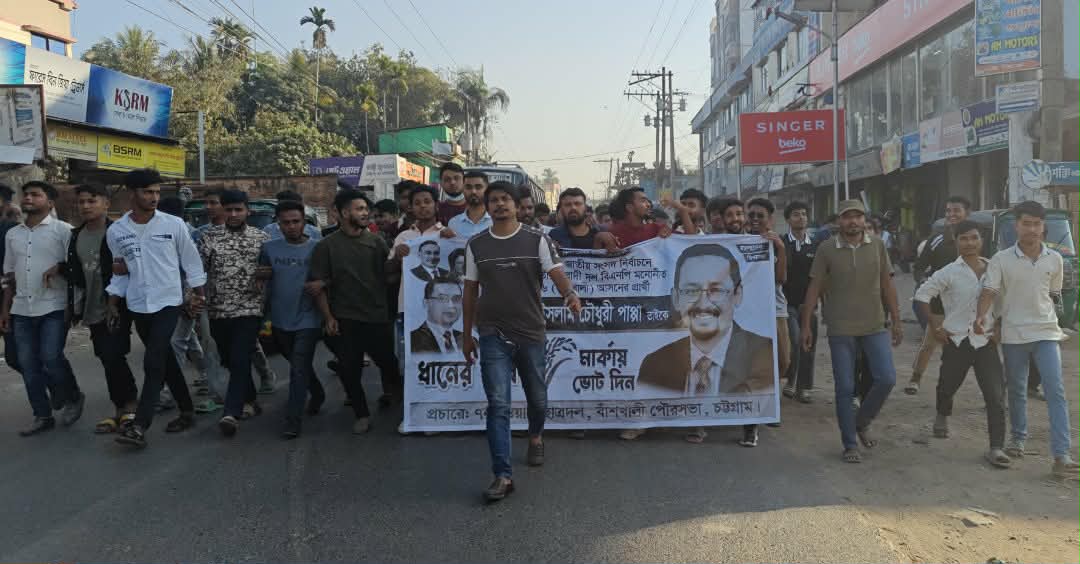 দেশ ও গণমানুষের উন্নয়নের লক্ষ্যে ধানের শীষ প্রতীকে ভোট প্রদানের আহ্বান জানিয়ে বাঁশখালী আসনে ধানের শীষের প্রার্থী পাপ্পার সমর্থনে বাঁশখালী পৌর এলাকায়, ছাত্রদল নেতা জিহানের